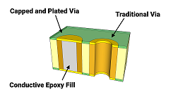 Via in pad is the design practice of placing a via in the copper landing pad of a component.